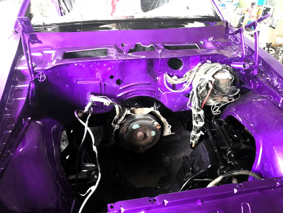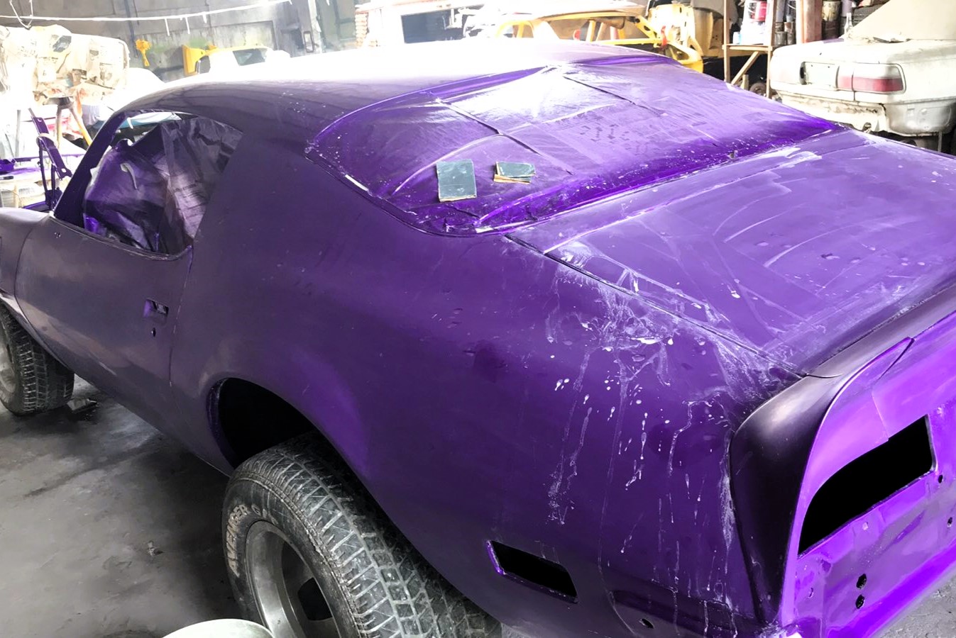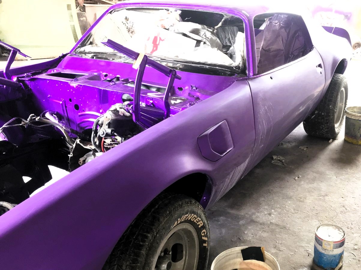 After his 1970 Pontiac Firebird Formula 350 suffered some damage from an engine fire in July 2022, owner Ferdi Raquelsantos took his muscle car to JSK Custom Paint and Auto Works, where it was partially disassembled, the damaged and rusted portions repaired, and the body was prepped for paint. Ferdi opted to have the car painted in Plum Crazy Purple, a vibrant color that was very popular in the late 1960’s on Mopar – Dodge and Plymouth – muscle cars but not on sports coupes from General Motors (GM).