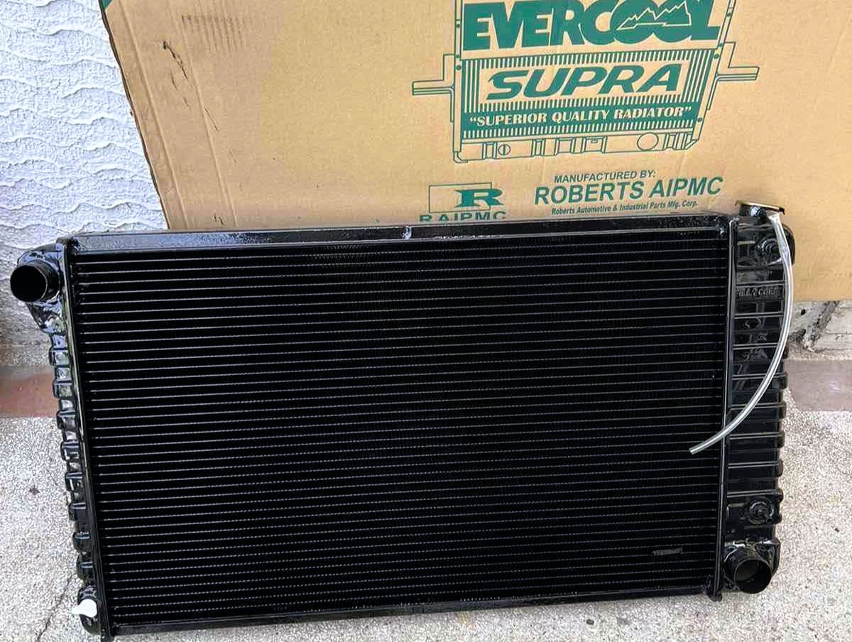 Roberts AIPMC made a brand-new and more efficient radiator out of the Firebird’s old radiator frame and tanks. Note the connectors at the bottom that will cool ATF from the A/T.