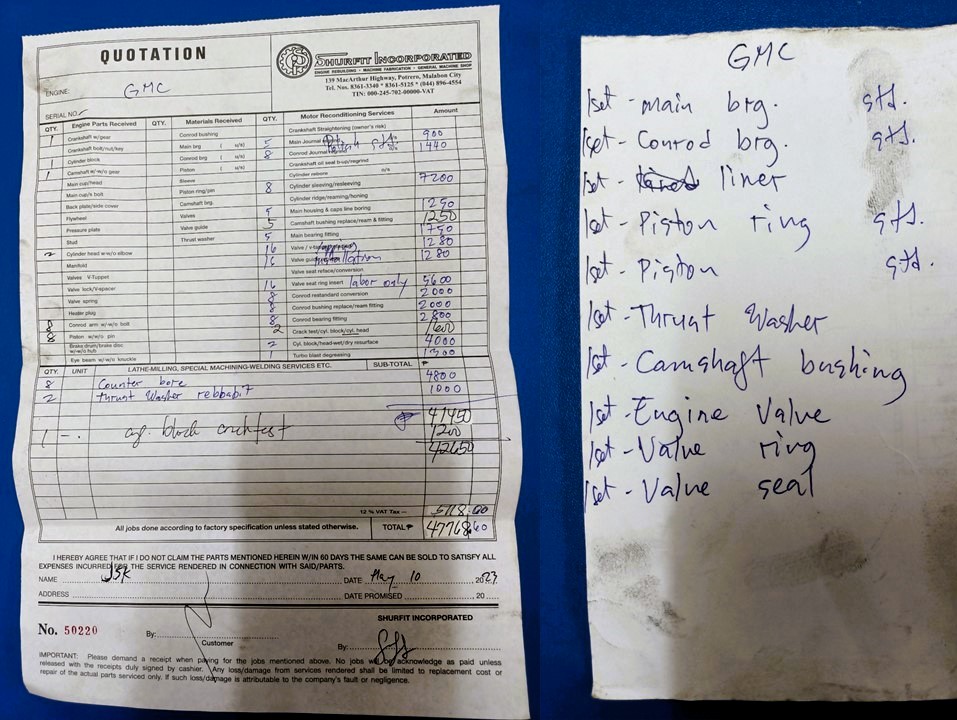 Aside from replacing the internal clutches, bands, and gaskets of the TH-350, the planetary gears were also checked for nicks, cracks or warping. After the automatic transmission was restored, the mechanics also replaced the torque converter after finding that it was also damaged by the engine fire. The radiator, which included a cooling circuit for the automatic transmission fluid (ATF), was refurbished by Roberts AIPMC in Cabuyao, Laguna using the radiator’s original frame, core and tanks but with new fins and water passages.