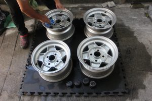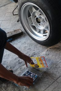 Our good friend and rally enthusiast Raul Asuncion brought us a set of original 5-spoke ATS 13”x7” wheels and we immediately snapped it up to replace the gold mesh-style faux Enkei wheels. The lighter ATS set removed several kilos of unsprung weight to make our Celeste handle and ride better.