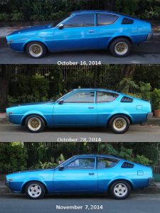 Ruel’s Celeste was a “10-footer” – it looks good from ten feet away – and it had a lot of issues. It had rust in some panels, a misaligned rear hatch, gauges that don’t work, tired and noisy suspension, weak brakes, nervous steering, and worse of all, the wrong stance. But at least, it was complete and running. Ruel was asking P80,000 for it but we settled at P70,000 after I pointed out the problem areas and after I learned that the Land Transportation Office (LTO) registration was not current. On October 15, 2014, I became the proud owner of a 1977 Mitsubishi Celeste 1600 ST.