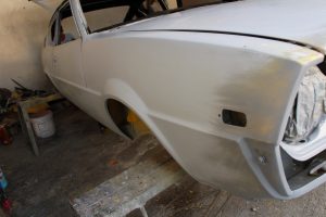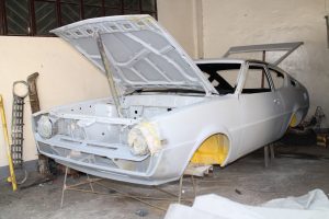 By the last week of October 2016, the JSK technicians have removed all the rotted metal and replaced the rusty portions with fabricated pieces that look like they came from the factory. After all the metal work, they started piecing the exterior back so they can align the body and trim parts. As the pictures show, our Celeste is beginning to look like a car again, except this assembly will only be temporary since the car will be disassembled again for the final painting process.