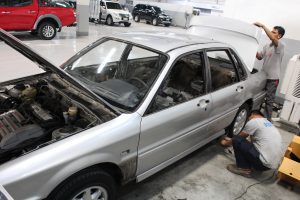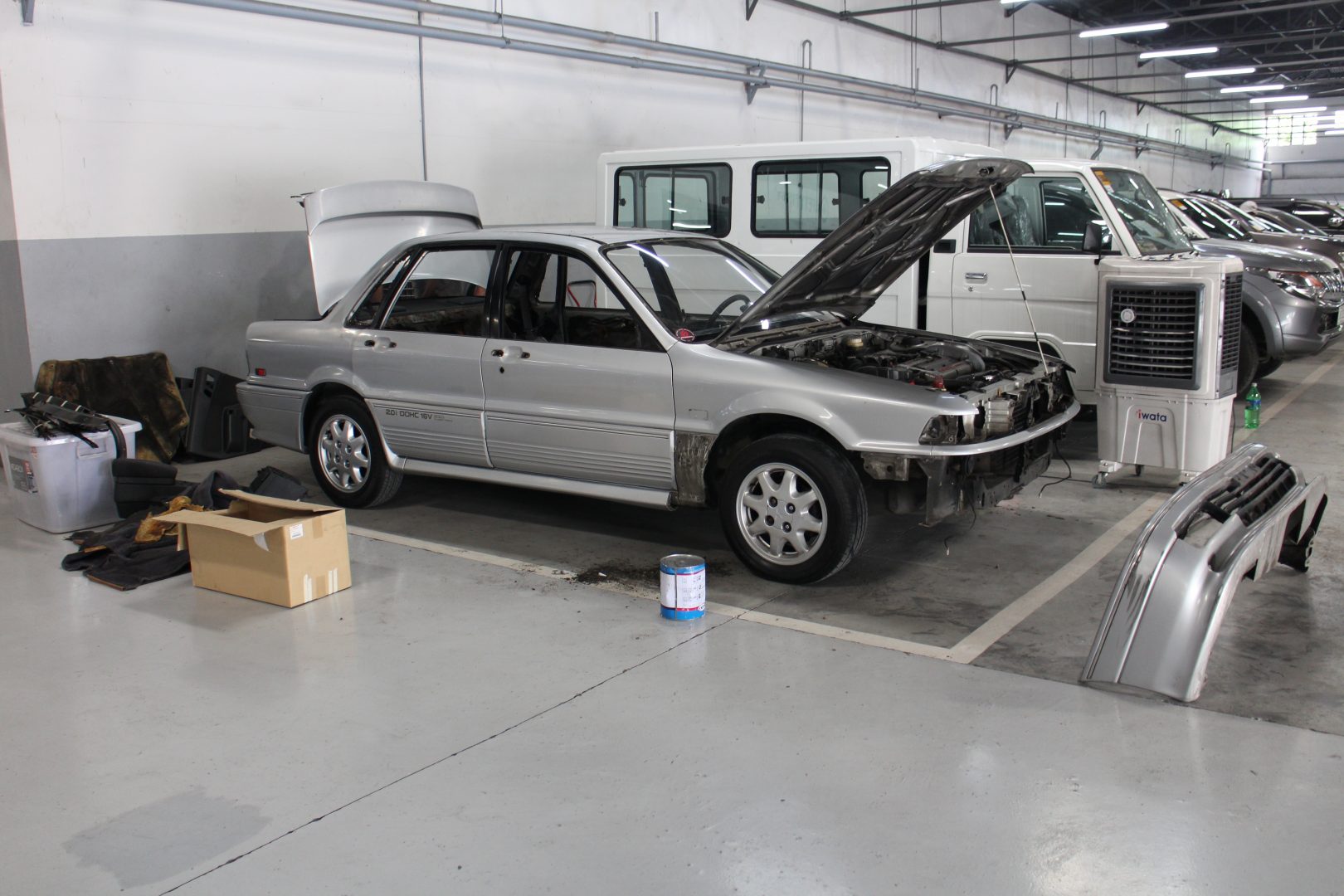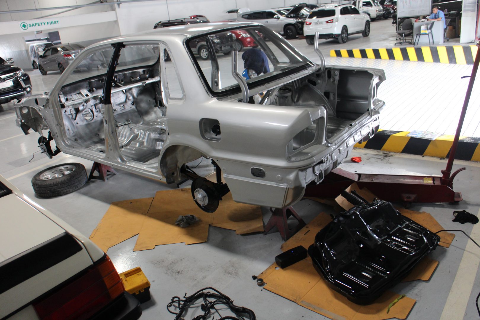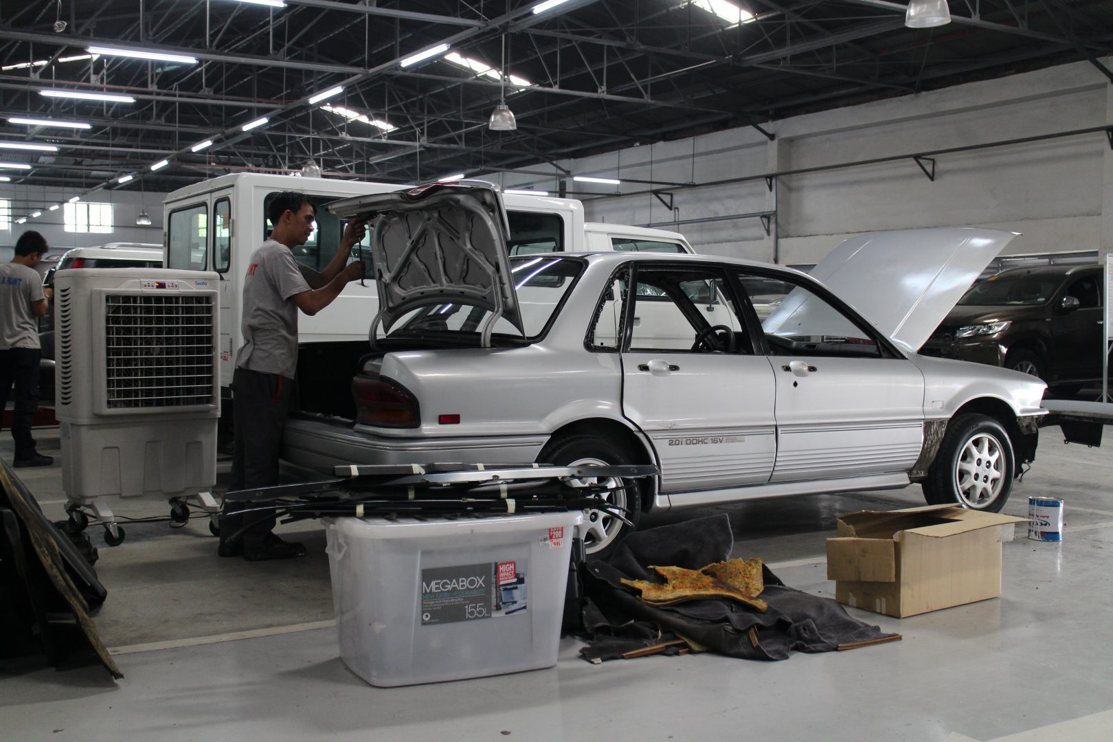 Rod Punzalan and his team were very pleased with the condition of the GTI to begin with. They did very little bodywork – just to remove the little dings and dents – and they did not need to scrape the paint to bare metal. They were able to preserve the car’s factory-applied original primer and base coat so the factory-applied rust protection is still intact. They just prepared the surfaces and sprayed several new coats of SSI silver and protective layers of clear coat.Log on again next week as we take a closer look at the newly restored and fully assembled 1991 Mitsubishi Galant GTI. Don’t miss it!