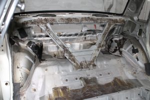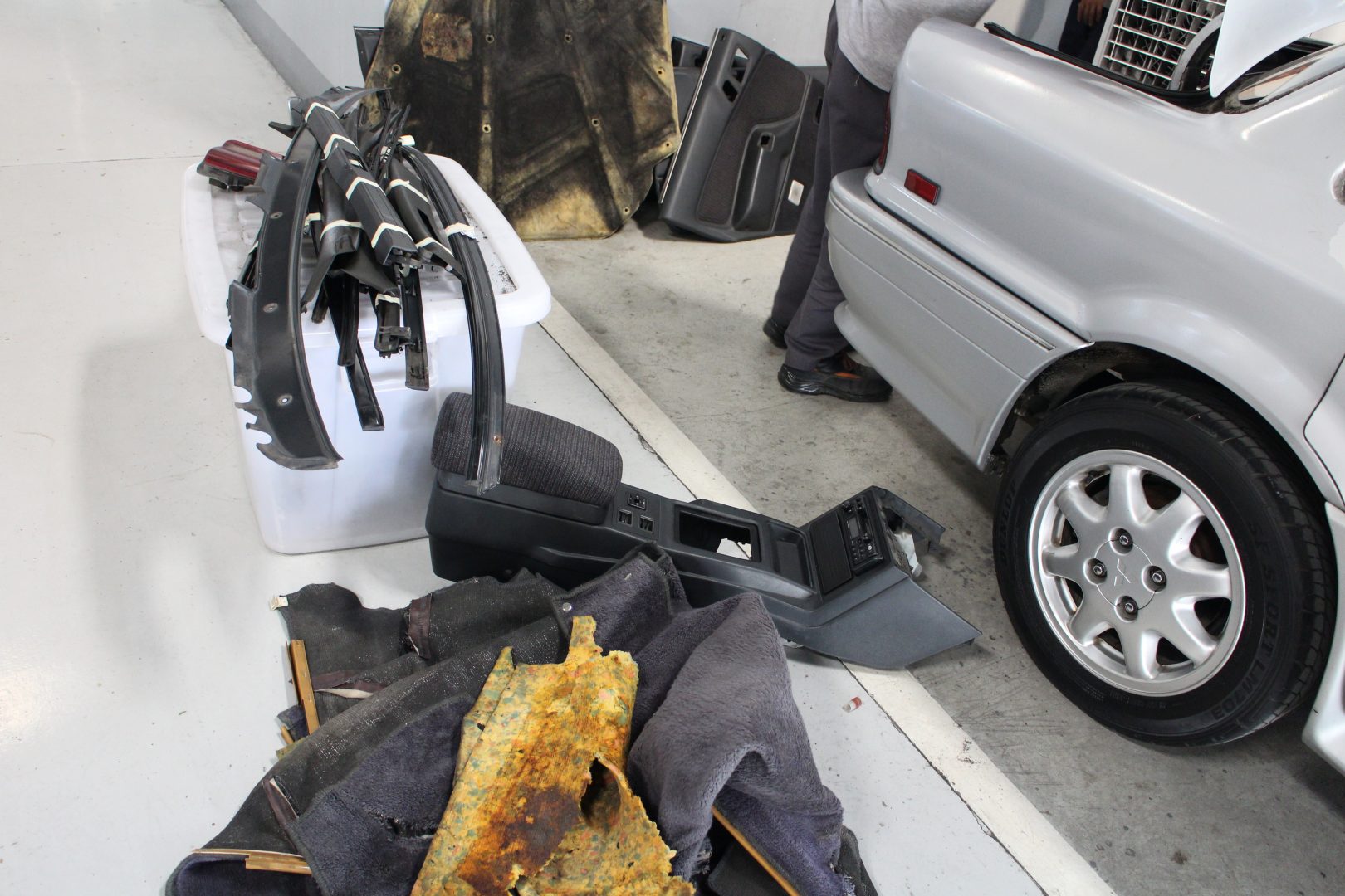 On May 16, 2017, we visited Diamond Motors Service to find that the mechanics had already removed the GTI’s major components like the drivetrain, interior, and suspension. Stripped down to its body shell, they were happy to report that they found almost no rust around the car.