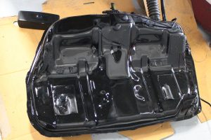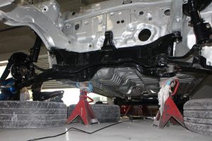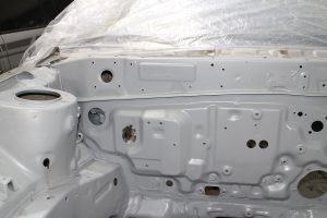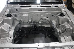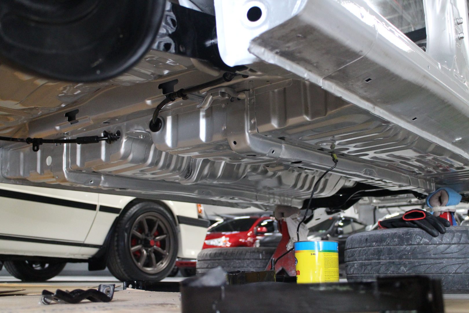 By July 2017, the paint and body shop technicians had sanded down the GTI down to its original factory-applied base paint and applied a fresh coat of Sunbeam Silver Iridium finish (Paint Code: SSI) top coat and several layers of clear coat for added luster. In August, they begun the re-installation of the underchassis components.