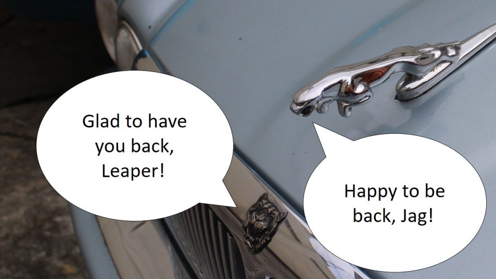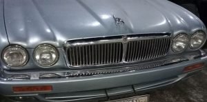 … and then reattached the entire front grille assembly back into the car. Our Jag now looks more stately!