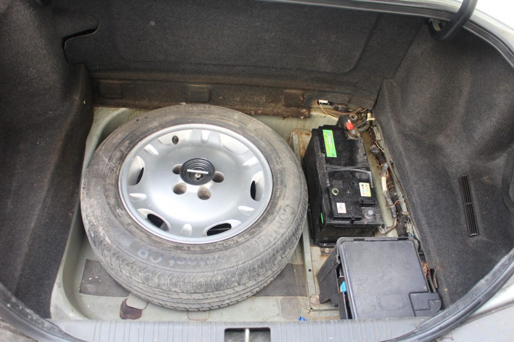 While we were at the trunk, we sorted through some of the stuff there, including a large plastic container that held mostly car care products (chrome polish, silicon spray, and a couple of waxes ), a small bottle of brake fluid, a bottle of automatic transmission fluid, and a jug of engine oil. We can conclude that the previous owner really tried to properly maintain this Jaguar when we was still alive. Underneath the cover, we found the full size-spare tire but there was no jack nor tools in the trunk. We noted that we need to find the panel that covers the battery to complete the trunk.