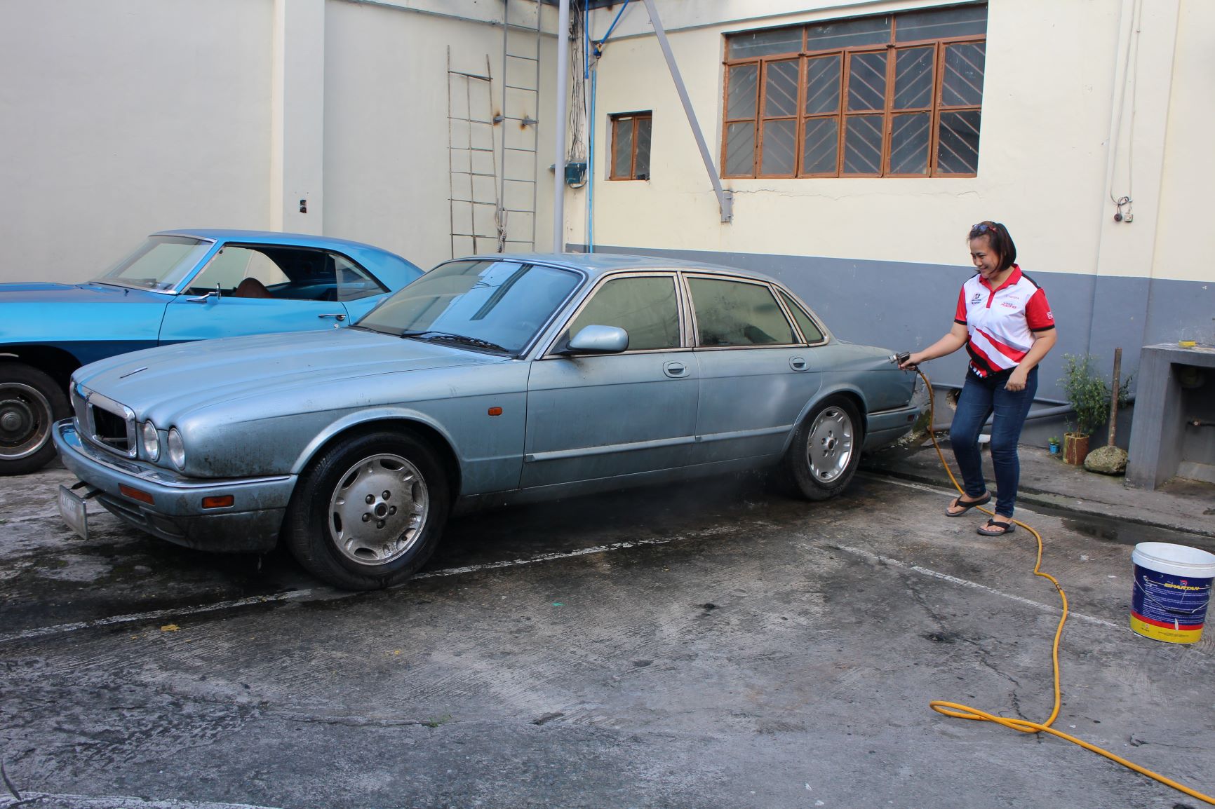 After rinsing the soap off, we were NOT satisfied with our XJ6’s first wash because we could still see some water marks left by acid rain on the paint, as well as some remnant three-year-old grime especially on the lower sills. Since there was still sunlight, and we’ve got nothing better to do on a lazy Saturday afternoon, we decide to soap the car one more time. Maestro, from the top, please…