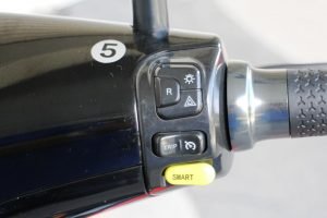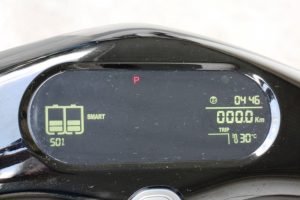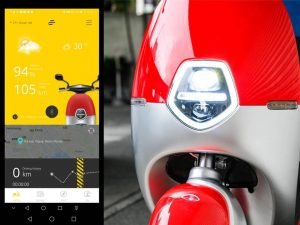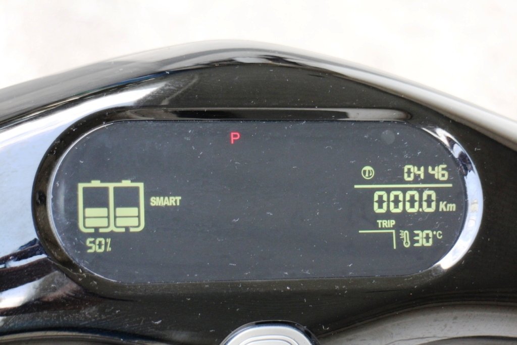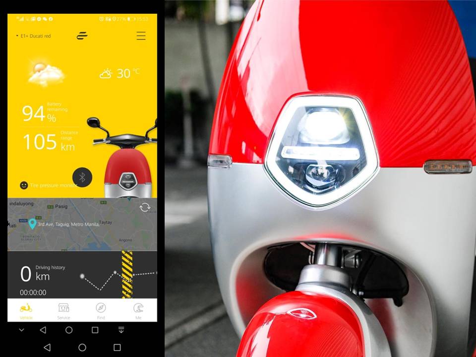 A smart key unlocks the handlebar and turns the electronics on while a power button in the center of the dash activates drive. The E1+ can be ridden like a twist-and-go scooter but with the added benefit of almost instantaneous torque courtesy of the electric motor that produces a peak of 105 Newton-meters. There’s a Reverse button on the handlebar that will allow the rider to slowly back out of an inclined parking space easily. The smart instrument panel features adjustable color schemes that automatically dims or brightens depending on the light conditions while riding.