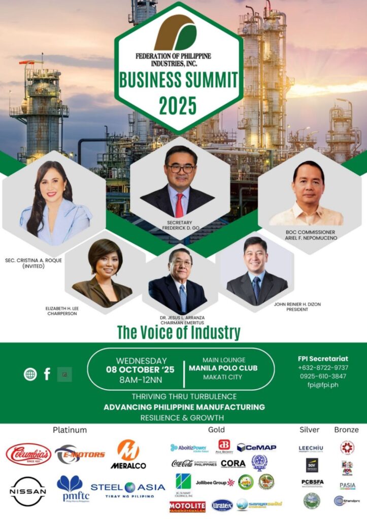The Federation of Philippine Industries (FPI) held its annual Business Summit at the Manila Polo Club on October 8, 2025. With the theme “Thriving Thru Turbulence: Advancing Philippine Manufacturing Resilience & Growth”, the summit was aimed to help revitalize manufacturing and production in the country through joint efforts with the affected industries, concerned government agencies, and subsequently, the consumers. FPI has long been the advocate of the “Buy Filipino” movement to support local industries and a staunch supporter of the “Philippine Standard (PS) Mark” to ensure the quality of local products.