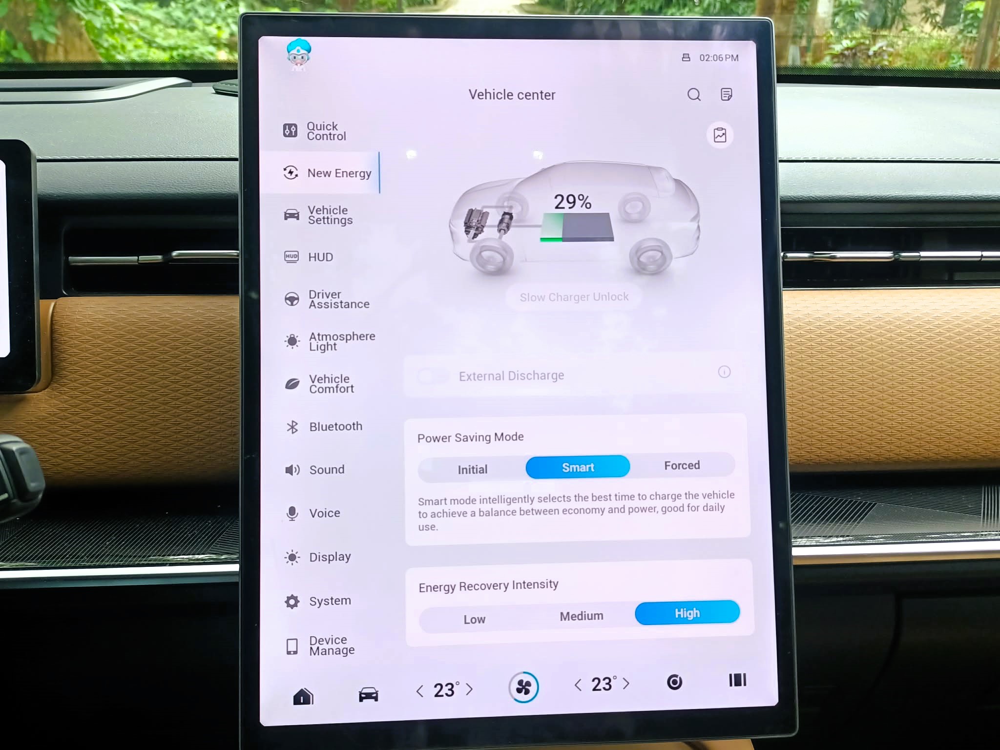In “New Energy” mode, the 14.8-inch touchscreen infotainment system updated us on the battery charge, the power saving mode, and the intensity of energy recovery while we were on the go.