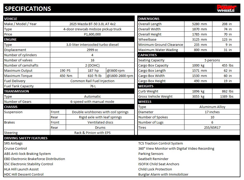 We’re just glad that there are brand new vehicles such as the 2025 Mazda BT-50 3.0L AT 4×2 that’s sporty, satisfying and safe to drive while remaining tactile and not overly techy. After being impressed with the latest advanced driver assistance technology in most modern vehicles that we’ve test driven, it feels good to go back to the basics, and experience a sporty drive in a workhorse that makes work feel more like fun. The trick now is to convince your business partner (or your better half) that you need a sporty pickup truck to augment your lifestyle and improve business efficiency while adding excitement to your everyday drive.
