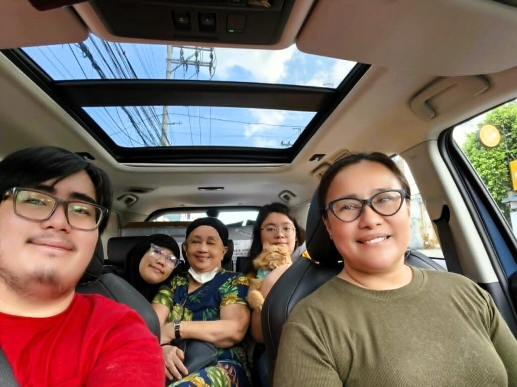 Maundy Thursday: Shawie drove the Destinator GT to Montalban, Rizal to visit her sister Sweet along with our son Chevy (in red), daughter Vette (with Colby, our Persian cat), her mom Mariam (center) and her mom’s helper, Riza.