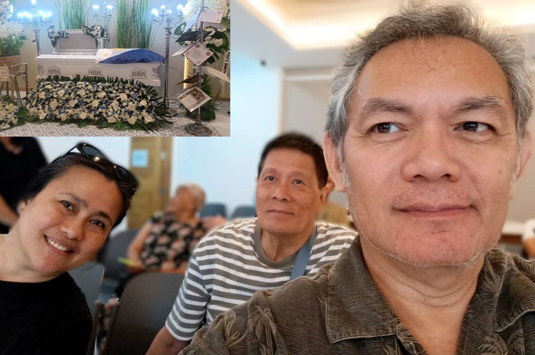 Shawie Dizon, Joseph Ong and the author at the wake of Tessa Salazar’s father, Antonio Salazar (inset), at the St. Matthew Chapel in the church of Our Lady of Fatima inside Philamlife Village, Las Piñas.