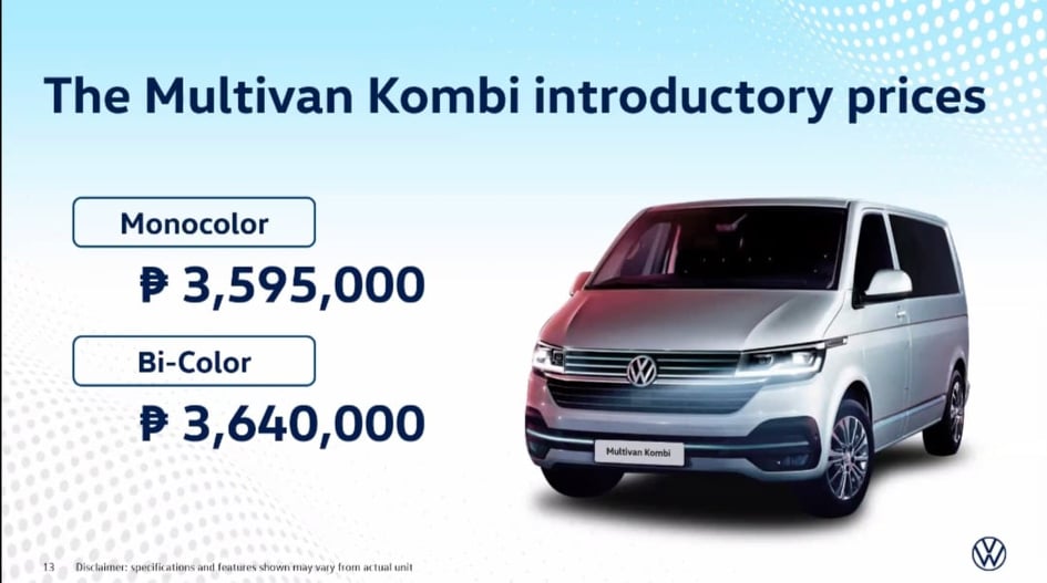 Unmatched heritage, consistently world-class automotive engineering and design locked in with German precision, top-of-the-line technologies and safety features, and an ownership experience that minimizes the worry and maintenance costs yet maximizes comfort, luxury, and efficiency, make the standard retail prices (SRPs) of the Volkswagen Multivan Kombi Highline variants an easy deal to shake hands on. The Monocolor variants of the Kombi Highline are priced at P3,595,000, while the Bi-Color models go for P3,640,000.