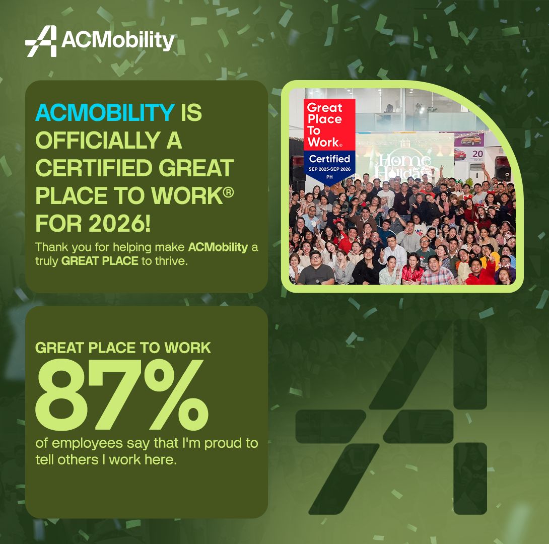 Complementing this milestone, ACMobility has also received the prestigious Great Place to Work® Philippines Certification—an internationally recognized standard for outstanding employee experience.
