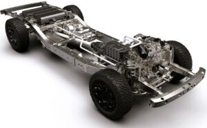Turbocharged 1.5-liter gas engine paired to an electric motor provide the Frontier Pro PHEV with 402 hp and 800 Nm of torque.