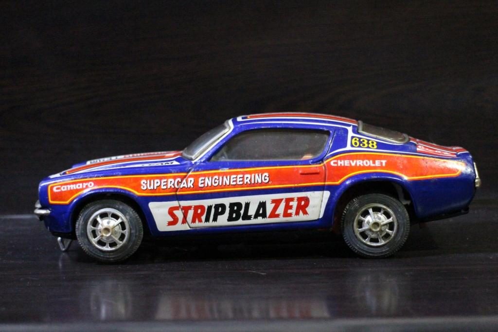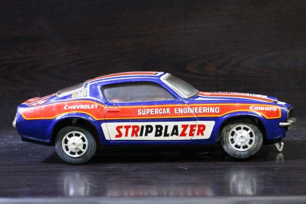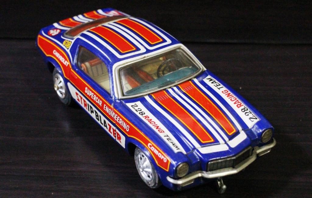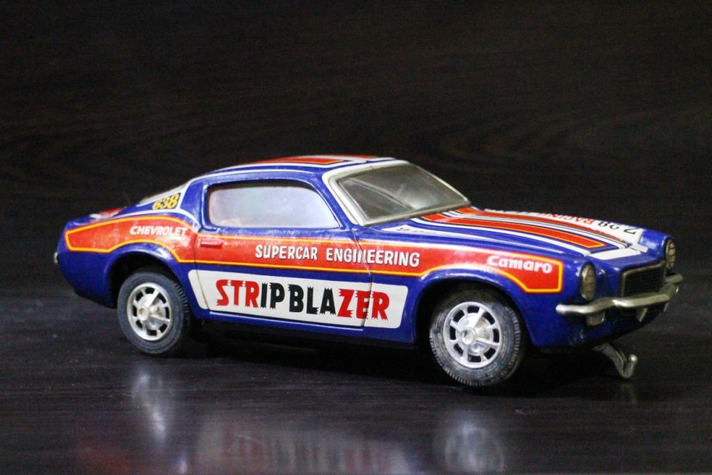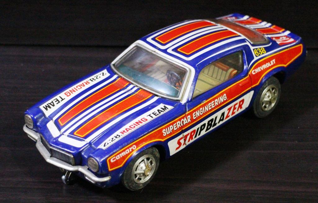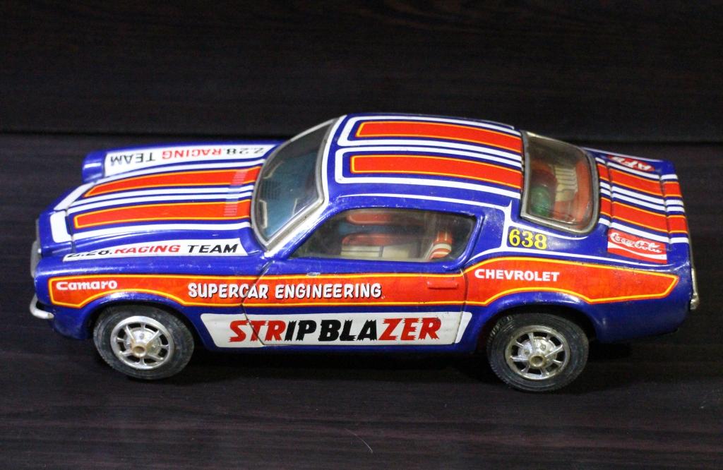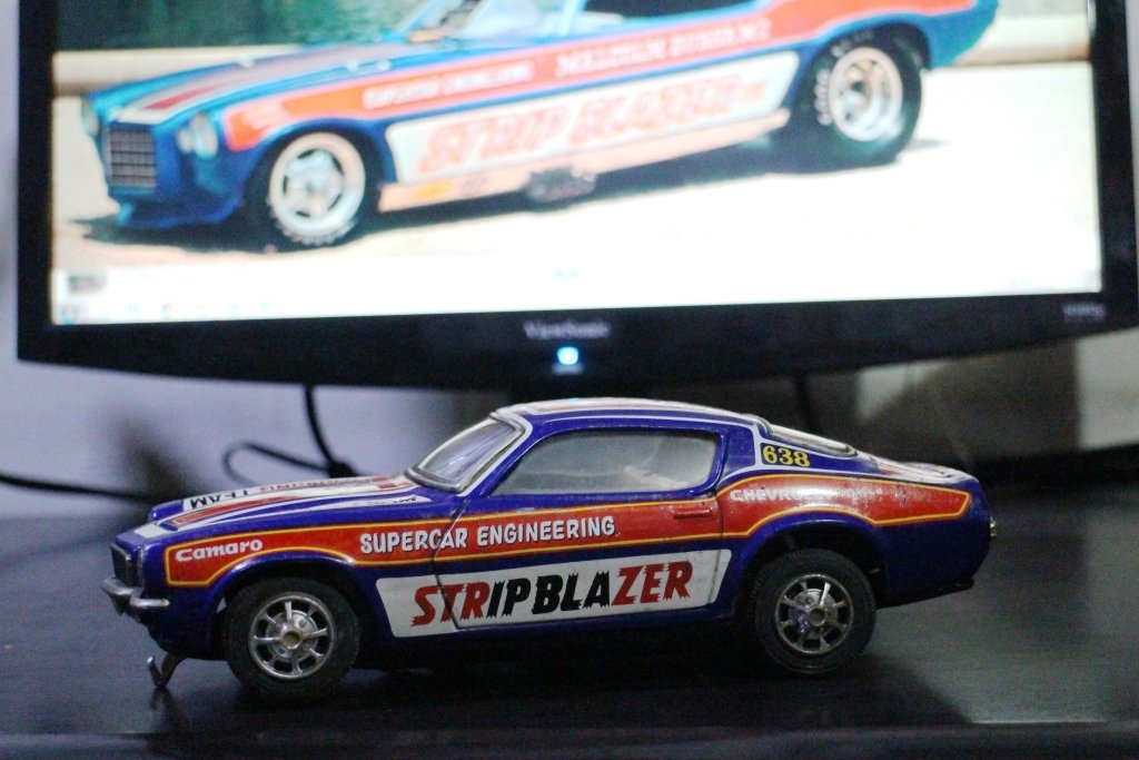 Inside a clear acrylic display case on top of my model collection shelf is a battery-operated Bump ‘N Go race car. It’s roughly a 1:18 scale model of Malcolm Durham’s 1970 Chevrolet Camaro Z28 Funny Car dubbed as the “Strip Blazer VIII”. The tin toy was given to me by a good friend, Frank Koh, to augment my collection of Camaro memorabilia along with my actual 1:1 scale 1971 Camaro Rally Sport (RS).