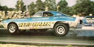 I learned that Malcolm Durham started his drag racing career in 1957 with a 1956 Chevy. After much success, he then raced a 1962 Impala 409, a 1963 Z-11 Impala 427 (Strip Blazer I), and a 1964 Chevelle (Strip Blazer II), which he updated into a Funny Car in 1965.