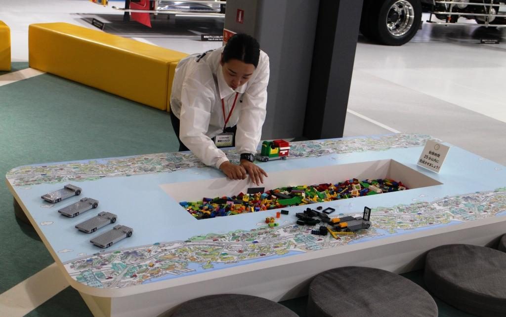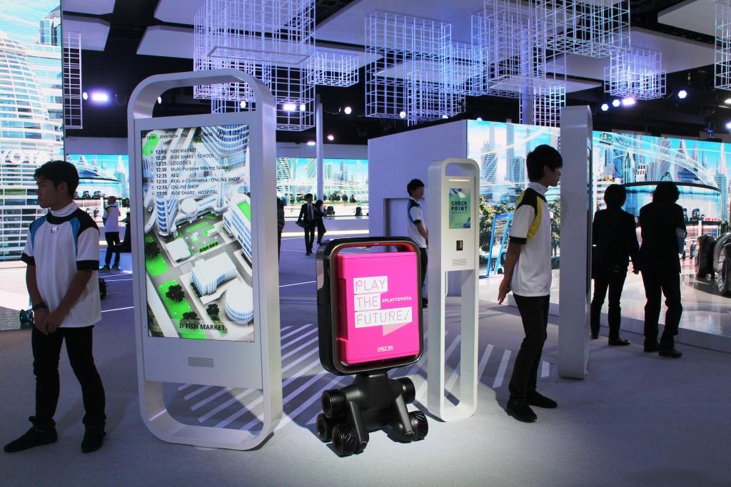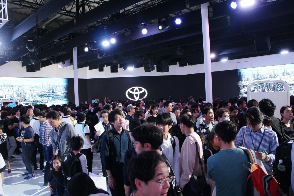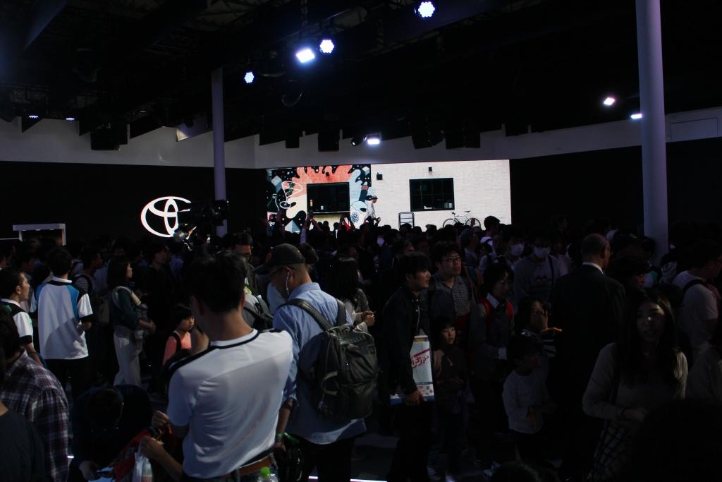 When we got to the Toyota pavilion inside the Aomi exhibition hall, it was darkened before the start of the show on the stage and LED wall…