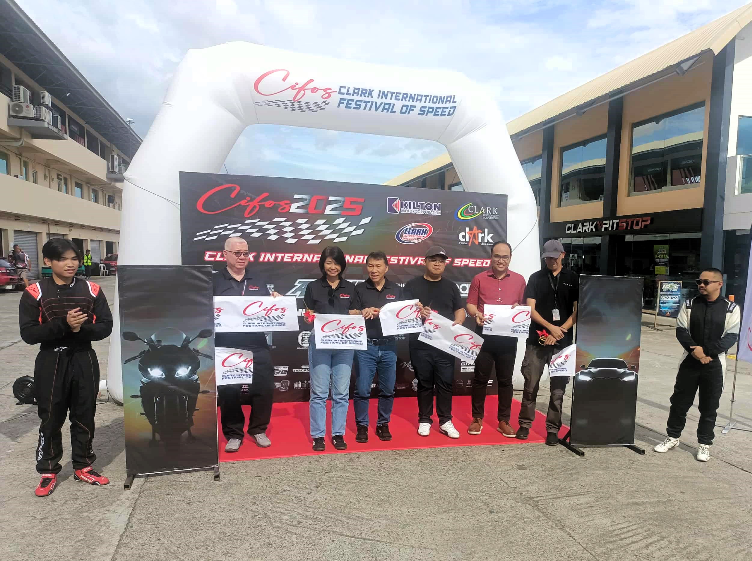 Johnny Tan, KMC & CIS officers, and representatives from Chevrolet & Volvo cut the large CIFOS ceremonial ribbon to officially open the Clark International Festival of Speed 2025.
