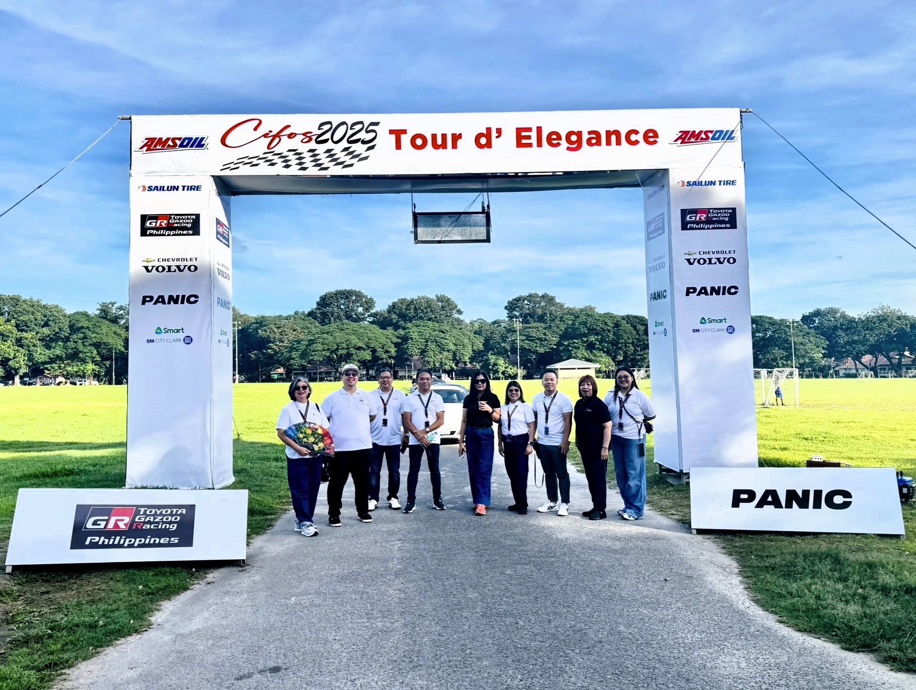 CIFOS 2025 officers and organizers posed under the Tour d’ Elegance starting arch at the Clark Parade Grounds.
