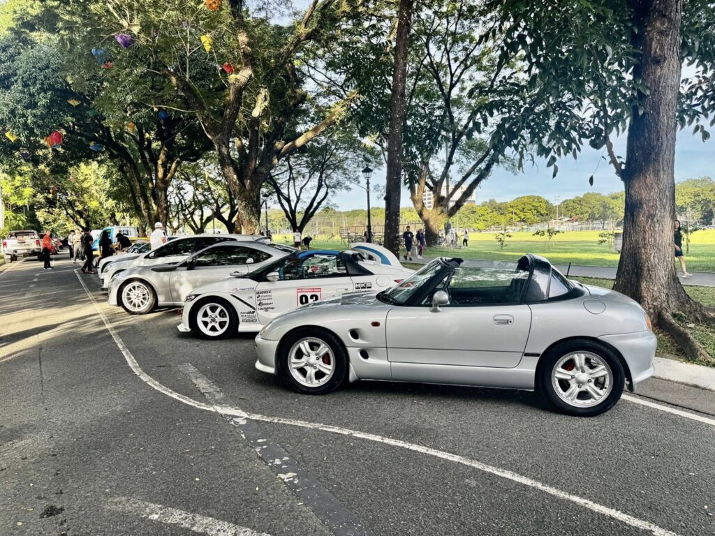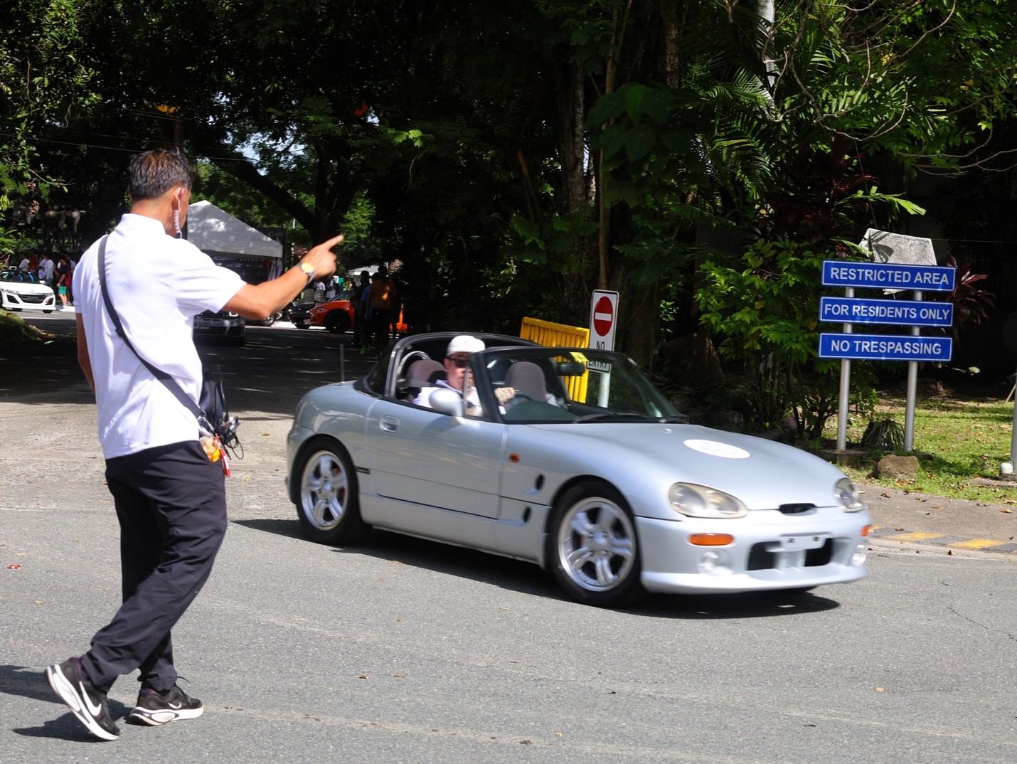A diminutive right-hand-drive Suzuki Capuccino roadster took a left turn going out of the Clark Parade Grounds.