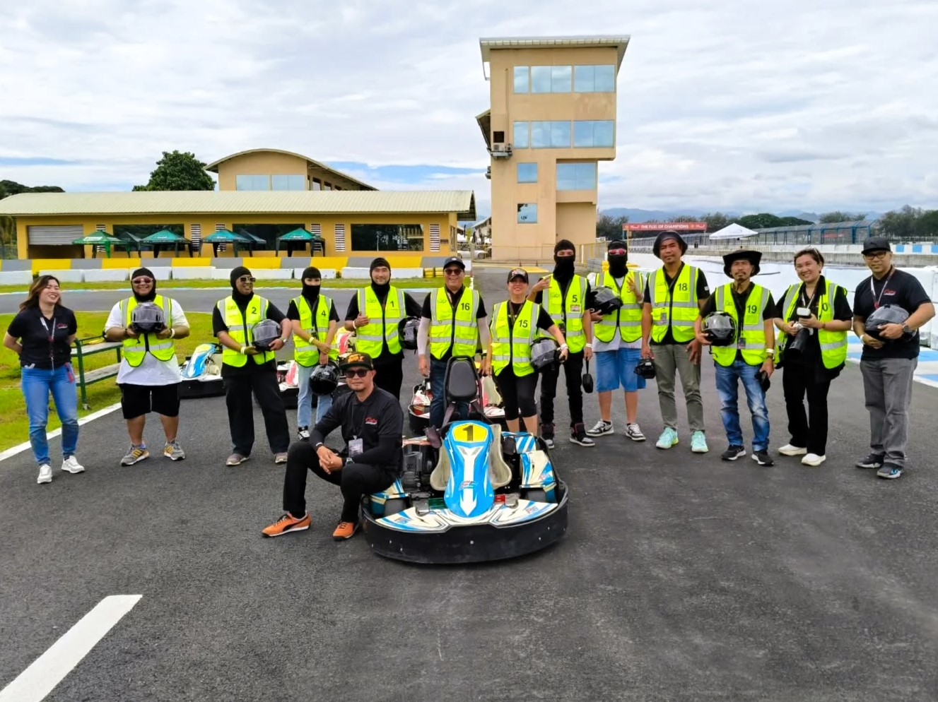 The media participants posed for a group photo before the start of their timed hot laps around the CIS Kart Track.