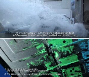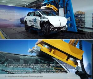 For the models to secure the 5-Star Rating, sample vehicles must undergo and pass several extreme testing challenges. Among the tests, the vehicles are subjected to a Water Submersion Test to determine how well the vehicle can resist flood damage as well as leakages, smoke, explosion, and fire tests. The E-H7 and E-HS7 passed the test and showed no leak, smoke, explosion, or fire from the battery pack’s electrolyte. The passenger cabin showed that it was well-sealed with no water leakage.
