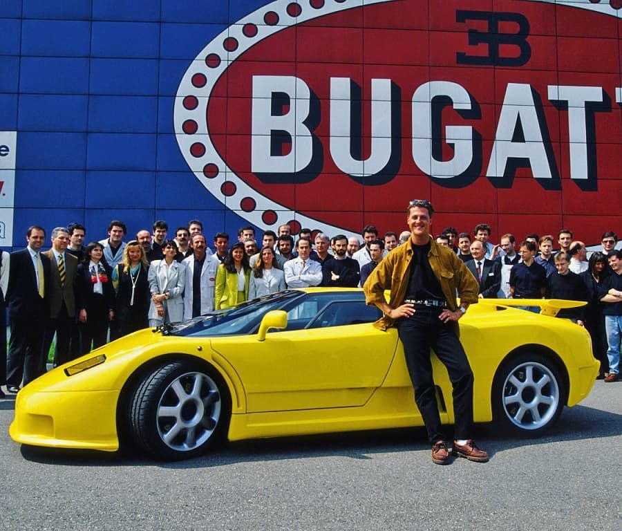 Just six months after the introduction of the EB 110 GT, a lighter and more powerful EB 110 Super Sport was introduced at the 1992 Geneva Motor Show. The 603-horsepower Super Sport variant was lighter than the GT by 150 kilograms by using carbon-fiber body panels on the exterior and in the interior. It can accelerate from zero to 100 km/h in 3.2 seconds and reach a top speed of 355 km/h. Formula One driver Michael Schumacher bought a yellow EB 110 Super Sport in 1994 and owned it until 2003.