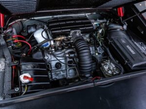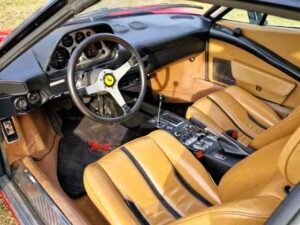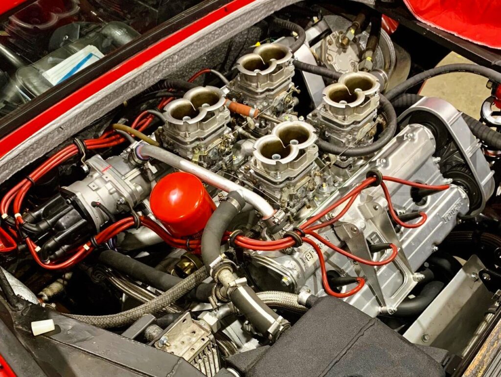 Power for the 308 GTB/GTS came from a transversely-mounted 2.9-liter 90° V8 engine with a flat-plane crankshaft, two belt-driven overhead camshafts per cylinder bank (making it a “quad cam”), four twin-choke Weber 40DCNF carburetors and single coil ignition. European 308 GTB/GTS with dry lump lubrication made 252 horsepower at 6,600 rpm but American versions with wet sumps had “only” 237 hp because of emissions controls. Mounted below the V8 engine was a fully-synchromesh “dog-leg” 5-speed manual transmission.