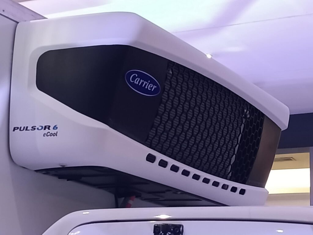 The all-electric Carrier Pulsor 6 eCool features a cooling capacity between 3,600 watts (-20°C / 30°C) and 5,600 watts (0°C / 30°C); a heating capacity of 3,000 watts (12°C / 15°C); and an ambient temperature of -15°C~53°C (cooling) and -30°C~50°C (heating). It can provide an air flow of 2,200 cubic meters per hour to an insulated body (box) with a volume of between 14 and 23 cubic meters at an ambient temperature between -20°C and 40°C. It also has a faster pull-down speed from 30°C to 0°C within 20 minutes, and from 30°C to -18°C in just 50 minutes, which is 21% to 31% faster than its competitors.