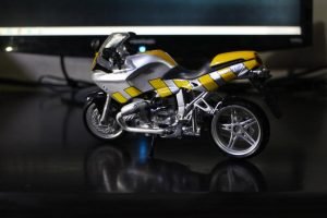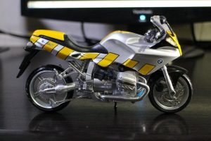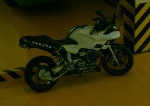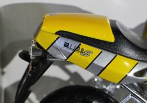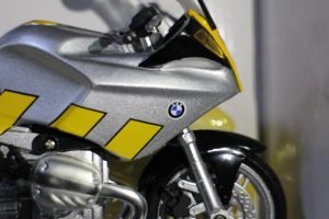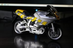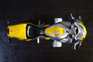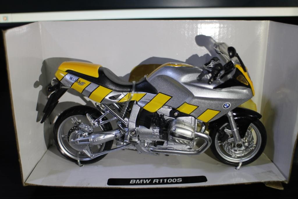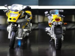 During my ownership of the Replika, I found a 1:12 scale die-cast model of an R1100S made by New-Ray Toys Co. Ltd. of Hong Kong under their Road Rider Collection series. Since it was a stock BMW R1100S finished in silver with yellow graphics and silver wheels, it didn’t have the belly pan lower fairing and the various carbon fiber parts, such as the valve covers and front fender, like my actual Motorrad.