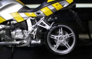 Initially, the idea was to have the model bike repainted and finished like my Replika. I was even asking around if anybody knows a modeler who can make a lower fairing for the model from scratch. However, after examining the model bike closely, I was amazed with the details that New-Ray poured onto it.