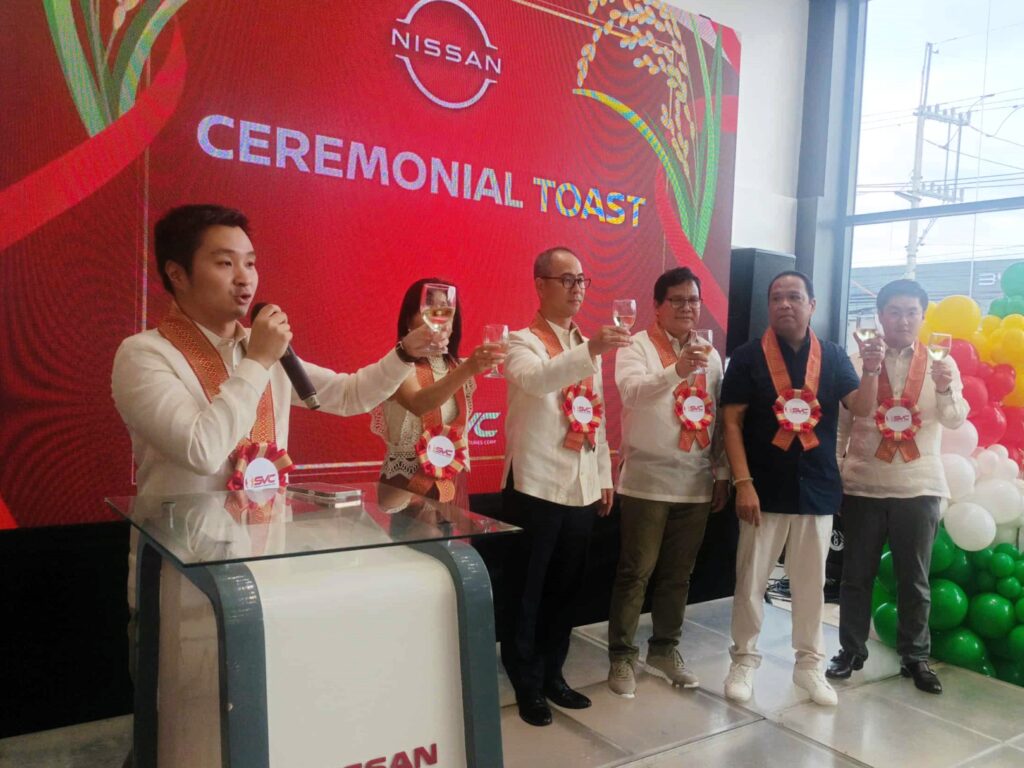 SVC Dealer Principal Mark Angelo Tionson leads the ceremonial toast celebrating the opening of Nissan Carmona.